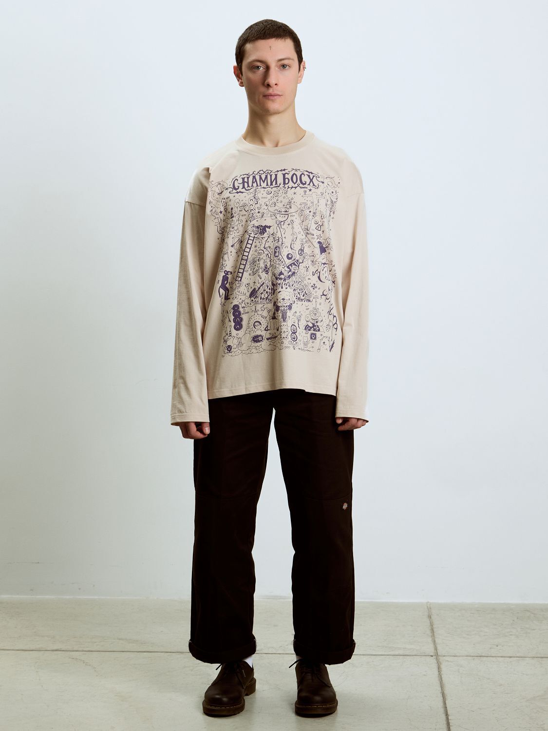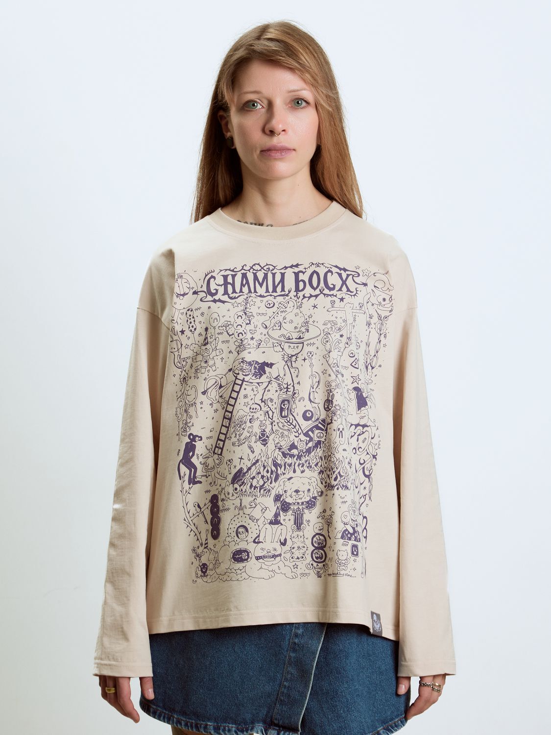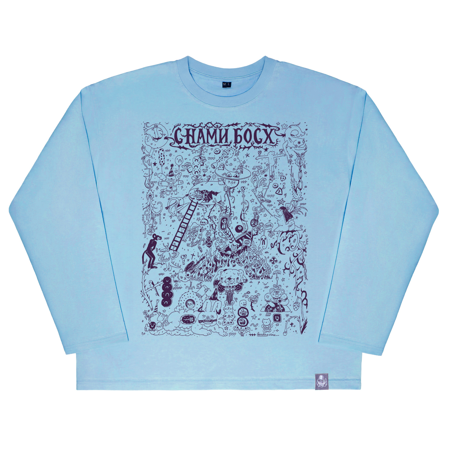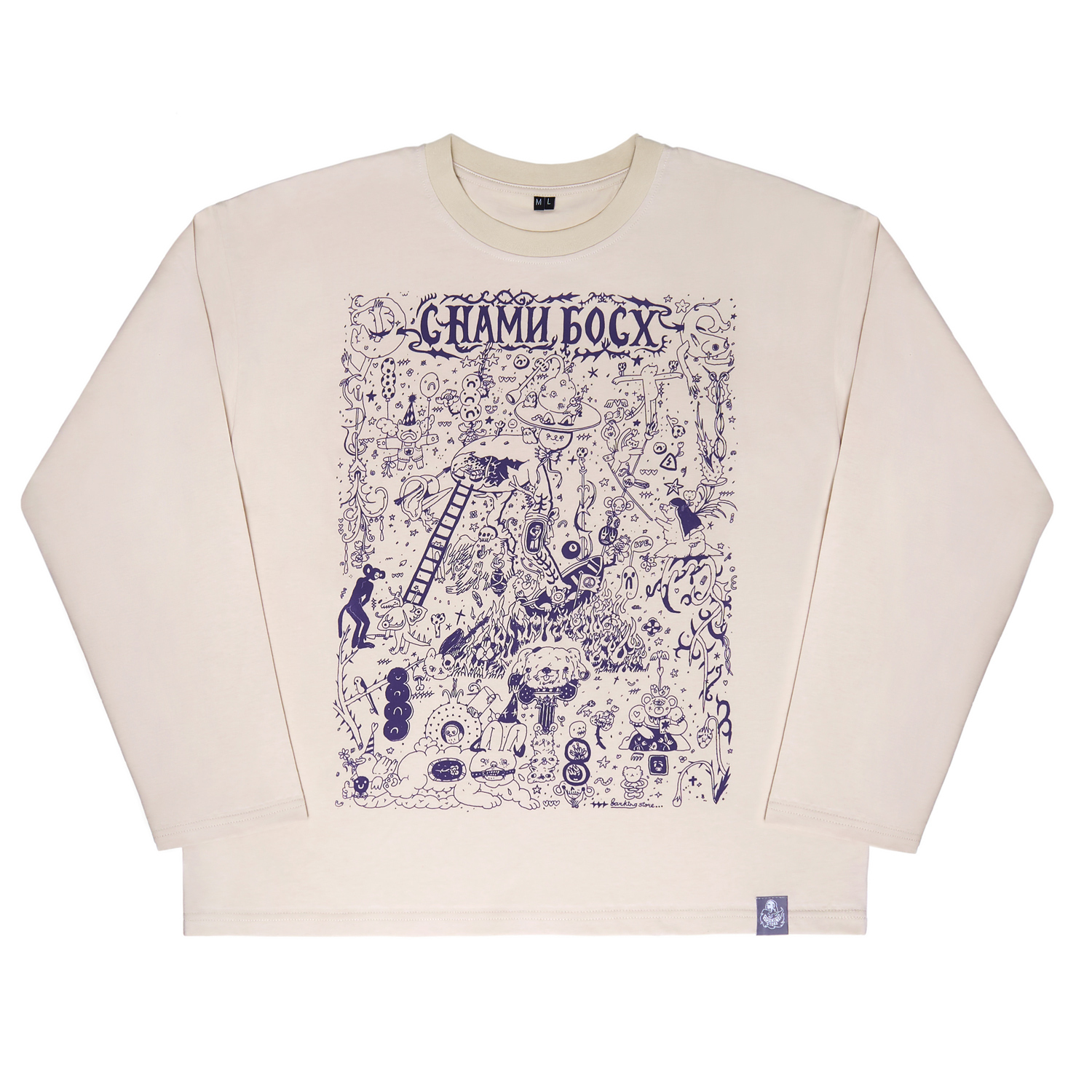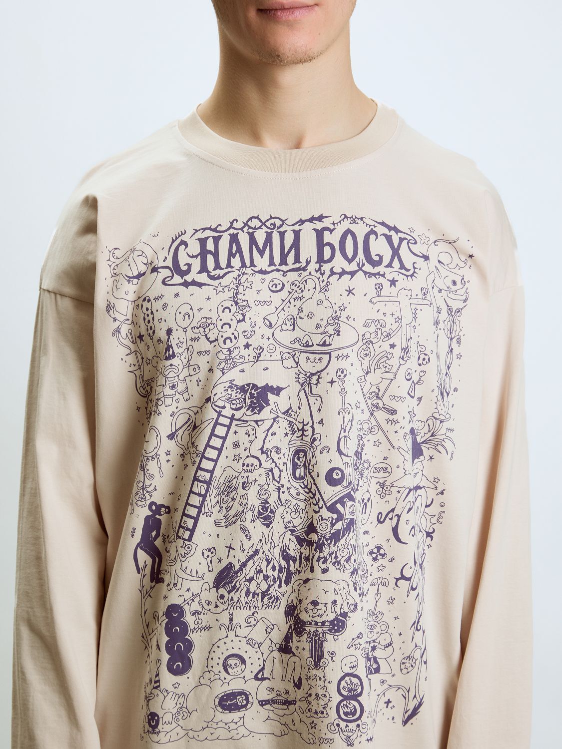 Метод нанесения принта — шелкография Материал лонгслива: 92% хлопок 8% лайкра, плотность 190 грамм